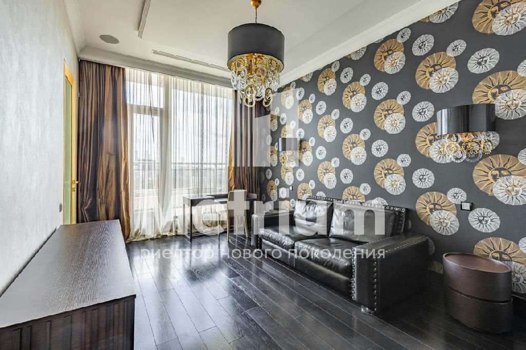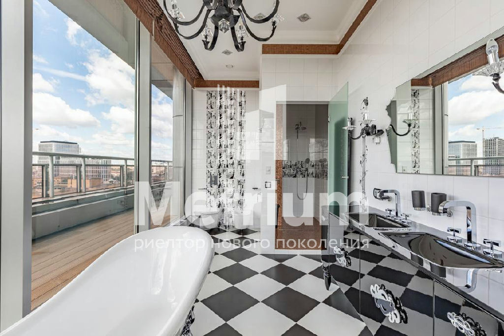 В пентхаусе сплошное четырехстороннее остекление с роскошными видами на исторический центр города и комплекс Москва-СИТИ.